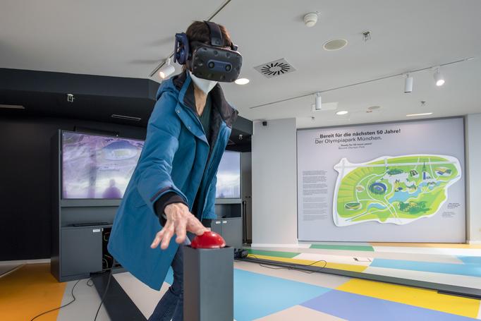 Unter dem Motto „Per Aufzug in die Zukunft“ erwartet die Besucher:innen auf der geschlossenen Plattform eine Ausstellung zu den Zukunftsfragen des Live-Entertainments. Zudem gibt es mittels VR-Brille einen spektakulären Blick vom Rande des Olympiaturms in die Vergangenheit des Parks und natürlich auch in eine mögliche Zukunft.